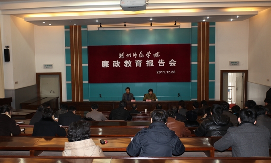 12月28日下午,火博(中国)召开廉政教育报告会。报告会由校纪委书记徐桂宝主持,中央纪委、国家监察部杭州培训中心教育长、反腐败研究所所长陈武明作廉政教育报告。 校领导出席了会议,全体中层干部、校纪委委员、各总支(直支)纪检委员、特邀监察员以及学校人财物等重要岗位的管理人员参加了报告会。