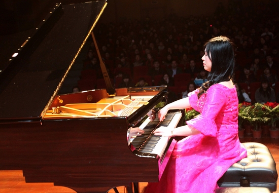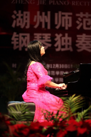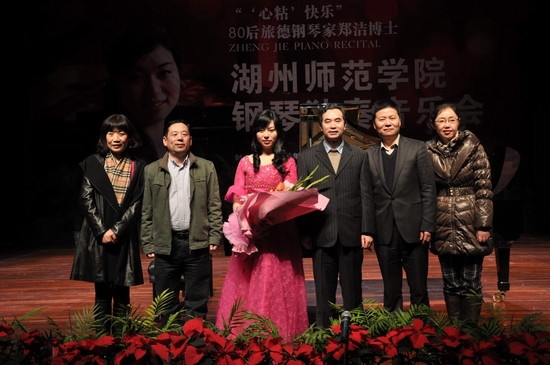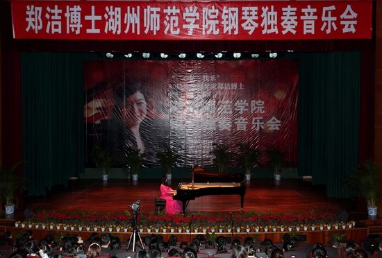 12月30日晚,校音乐厅内座无虚席,不时传出阵阵悠扬的钢琴曲,时而舒缓,时而激昂。由浙江省音乐协会和火博(中国)共同主办的 “心‘粘’快乐” 80后旅德钢琴家郑洁博士钢琴独奏音乐会成功举行。校党委书记刘剑虹、副书记周家健、副院长叶金云与陪同郑洁博士来火博(中国)的宁波大学嘉宾出席音乐会,火博(中国)师生员工和慕名而来的音乐爱好者共400多人,一同聆听了郑洁博士的深情演奏。