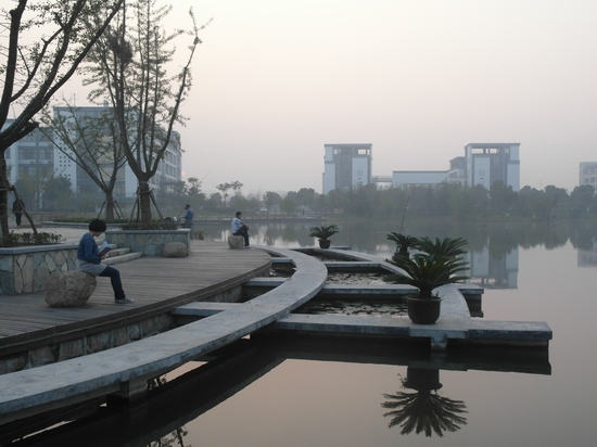 东校区新落成的长兴广场、安吉园、德清湖等别具特色,校园文化景观、场馆的建设也让同学能够深切感受到浓厚的文化校园风味。长兴广场内的长兴赋、金钉子墙、长兴十景浮雕、金沙泉、银杏、骨里红梅,特色十足。“我们把学校景观变得带有‘微湖州’特色,景观建设过程中融汇了湖州各地本土的烙印和元素,希望湖文化能够更好地传承与发展。” 校园建设处副处长陈六松老师介绍道,“文化场馆,不只应具体到某一建筑物或者是什么别的,景观的建设也是其中一个重要组成部分。在建成的东校区景观中,面向篮球场的一方建有八百多平方米的舞台,为师生提供展示艺术才能的场所,也有利于同学们身心的发展和交流。有了平台,相信大家不只会得到锻炼和发展,更能够起到‘育人’的作用。使大家融入文化的氛围。”