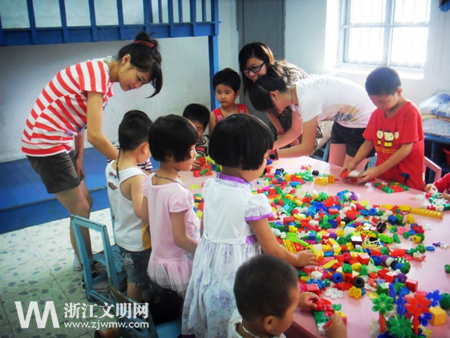 关爱留守儿童,一直是火博登陆平台师生长期坚持的。2011年夏天,“幸福手拉手”实践服务团作为浙江省唯一一支团中央重点团队,走进四川省乐山市犍为县,为当地儿童开设了岷江畔的夏令营。支教团队由8名学生,3名老师组成。为使支教活动更加务实,师院的师生们给异乡的小朋友们带去的不仅仅是课本知识,更多的是学习方法以及诸如绑鞋带之类的生活技能。