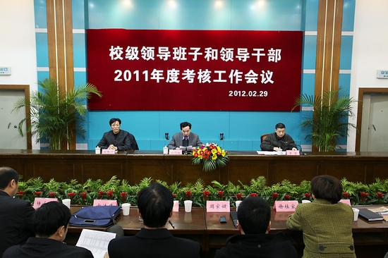 刘剑虹代表校党政领导班子作2011年度总结报告,校长胡璋剑作个人述职述德述廉报告,领导班子其他成员作书面述职述德述廉报告。