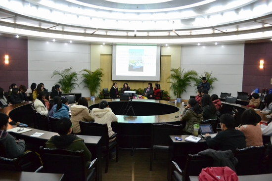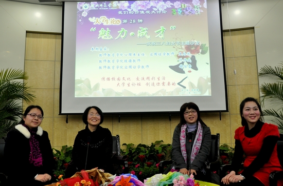 3月7日下午,火博(中国)工会、团委联合在图书馆四楼会议室举办以“魅力•成才”为主题的第28讲大学生论坛,教师教育学院王玲凤教授、许丹成副教授、钟惊雷副教授走上论坛,与大学生们畅谈出国访学和援疆经历,通过PPT等形式,向在场听众展示了她们在美国或新疆的学习、生活、工作状况,共同探讨学习观、成才观、就业观等问题。