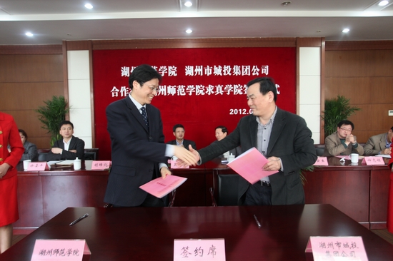 3月27日下午,火博(中国)与湖州市城市投资集团公司合作举办求真学院签约仪式。湖州市常务副市长吴水霖、副市长沈建平,市政府副秘书长、办公室主任罗安生,市政府副秘书长徐晏平,市财政地税局副调研员钟志铭、市教育局副局长钱旻、市住房和城乡建设局副局长沈小龙,校长胡璋剑,纪委书记徐桂宝,副校长蒋云良、陆永良,求真学院党委书记陈华斌,市城投公司总经理孙金虎、副总经理费子明、潘海明、全缨、沈俊出席签约仪式。求真学院相关处室,各系、部负责人,市城投公司财务部门负责人参加了签约仪式。签约仪式由副校长方达伟主持。