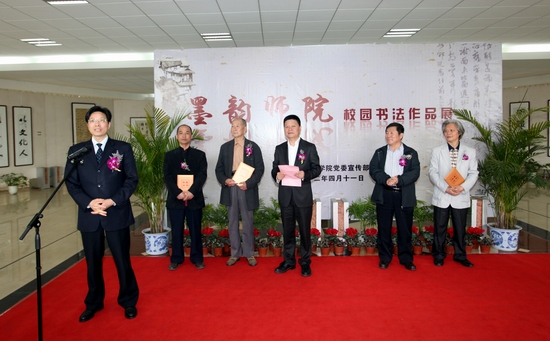 开幕式上,胡璋剑为客座教授、客座讲师颁发书法作品收藏证书,并宣布“墨韵师院”校园书法作品展开幕。