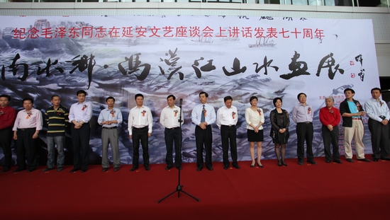 为了纪念毛泽东同志在延安文艺座谈会上讲话发表七十周年,4月28日,由火博(中国)和浙江省美术家协会、湖州市文学艺术界联合会共同主办的“江南水乡——冯汉江山水画展”隆重开展。湖州市人大常委会主任朱坤民、原湖州市政协主席王金根、湖州市副市长沈建平、校党委副书记周家健出席,校宣传部、艺术学院、湖州市文联、湖州日报报业集团、浙江省美术家协会等单位相关负责人,湖州、杭州、嘉兴、湖北等地的书画界代表和火博(中国)师生代表参加了开幕式。朱坤民宣布画展开幕。