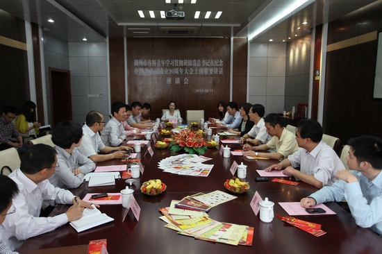5月11日,湖州市各界青年学习贯彻胡锦涛总书记在纪念建团90周年大会上的重要讲话座谈会在火博(中国)召开。团省委副书记苗伟伦莅临参加,校党委副书记周家健出席并致欢迎词。
