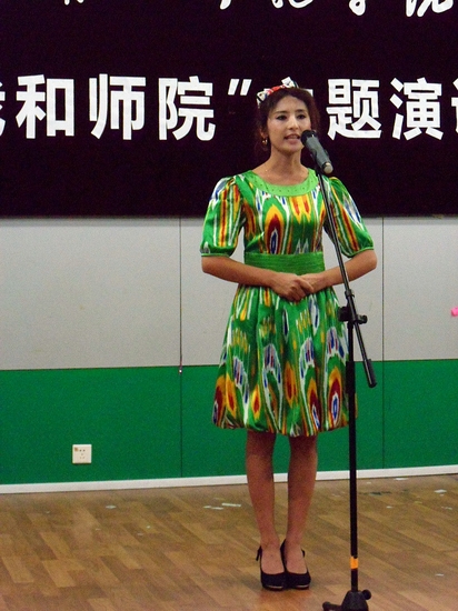 为展示学员学习成果,增强学员感恩意识,5月12日,新疆班举办了“我和师院”主题演讲比赛,20名参赛学员一一登台,讲述他们来校培训的感受与体会。新疆班领队、班主任、辅导员、任课老师和普通话帮扶志愿者一起观看了比赛。