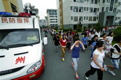 由湖州民防学院志愿者和教师们组成的疏散引导组、安全警戒组、后勤保障组,组织、保护着学生撤离。没过几分钟, 6幢寝室楼的2200名学生全部有序撤出寝室,聚集在操场上。整个疏散过程自始至终井然有序,险而不惊。