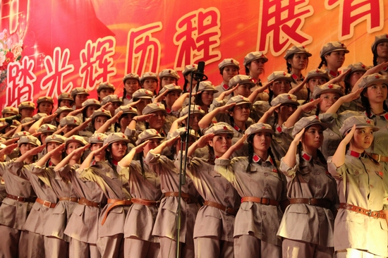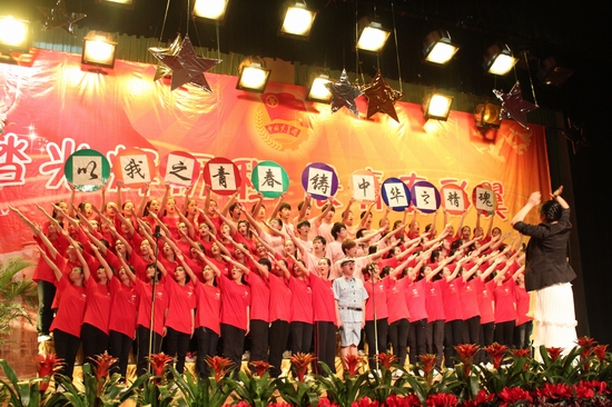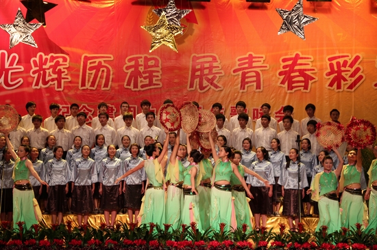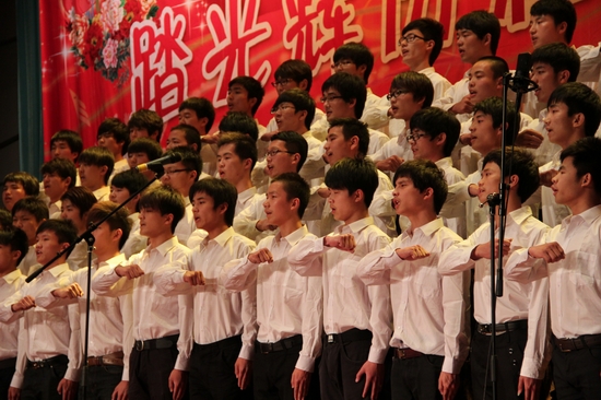 全校12个合唱团满怀激情,高唱红歌,整场比赛精彩纷呈,高潮迭起。《在灿烂阳光下》、《走向复兴》、《祖国不会忘记》、《半个月亮爬上来》等一首首耳熟能详的红色经典歌曲响彻校园。