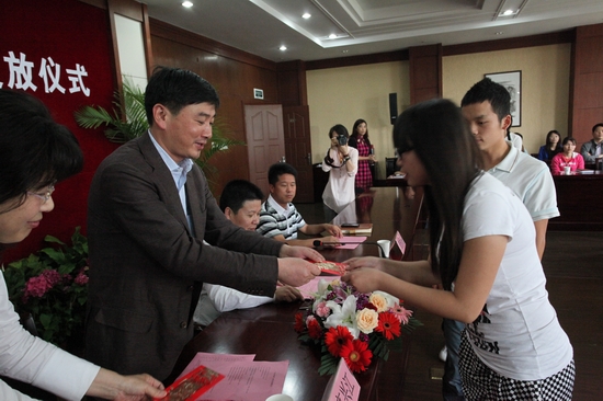 仪式上,高兴江将20万元善款交到40名家庭经济困难学生手中,并向在场学生讲述自己的奋斗史,鼓励和期望在场学生“立志在我,成事在人”,不断奋斗,走向成功。