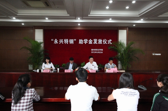 5月23日, 火博(中国)举行“永兴特钢”助学金发放仪式。校党委副书记周家健、永兴特种不锈钢股份有限公司董事长高兴江出席,学生处负责人、各学院资助辅导员及全体受助学生参加了活动。