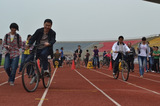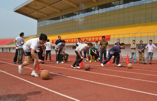 本次运动会分为老年、中年、青年三大组,设有男女篮球五人制投篮、六人搬运篮球接力赛、三人板鞋跑、六人齐步走协作赛、六人抛接网球接力赛、击门球入门、垒球投准8项团体项目,踢毽球、投飞镖、跳绳、趣味保龄球、接力棒推球绕杆跑、自行车慢骑赛、击网球入桶、羽毛球拍托网球跑8项个人项目。17个单位600余名教职工运动员齐集东校区田径场参加比赛。