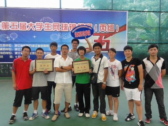 本次比赛由浙江省教育厅、浙江省体育局、浙江省大学生体育协会网球分会主办,浙江大学、浙江理工大学承办,共有省内50多所高校的400多名运动员参赛,是历届省大学生网球赛中参赛单位、参赛人数最多的一次比赛。火博(中国)网球队参加了甲组(普通本科组)和丙组(体育专业组)的比赛。经过顽强拼搏,我队获得丙组比赛女子团体第二名、男子团体第四名;单项比赛中,高亚倩、戚丹丹获得女子双打冠军,并分获女子单打四、五名;留梦雨、董晓伟获得男子双打第六名。