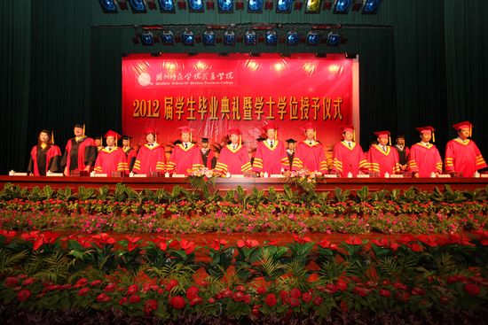 6月14日上午,求真学院在音乐厅隆重举行2012届学生毕业典礼暨学士学位授予仪式。求真学院董事会、党政领导班子成员,教务部、学工部负责人,各系主任、总支副书记、辅导员、教师代表,英国普利茅斯城市学院来宾,毕业生代表等出席了毕业典礼。