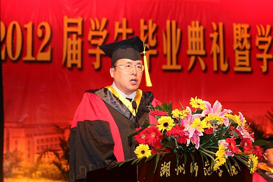 典礼上,湖州师院党委书记刘剑虹为省级优秀毕业生代表颁发证书。