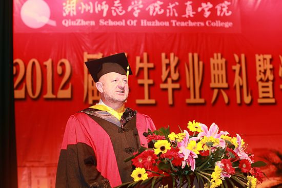 英国普利茅斯城市学院教务部主任Peter Mills向毕业生表达了热烈的祝贺和由衷的祝福。教师代表、信息与工程系祝守新教授和毕业生代表潘建超分别发言。