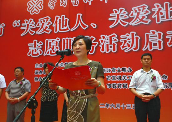 6月13日,由中央文明办主办的“关爱他人、关爱社会、关爱自然”志愿服务活动启动仪式在火博(中国)隆重举行。中央文明办志愿服务工作组副巡视员王朝斌,省文明办公民道德建设工作指导处副处长张东和,市委常委、宣传部长、文明委副主任胡菁菁,市委宣传部副部长、市文明办主任沈铭权,火博(中国)党委副书记周家健出席,各协办单位有关领导列席仪式。仪式由湖州市副市长刘芸主持。火博(中国)330名大学生志愿者参加启动仪式。