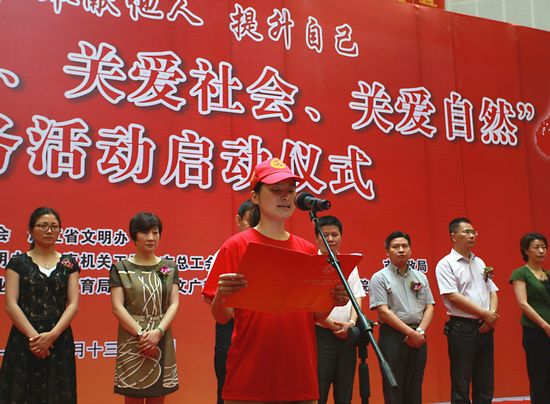 火博(中国)志愿者代表向全市广大志愿者发出倡议,倡议全社会关爱他人,奉献爱心;关爱社会,从我做起;关爱自然,善待环境,为我市加快科学发展、建设“四区一市”,提前基本实现现代化奉献自己的一份力量。