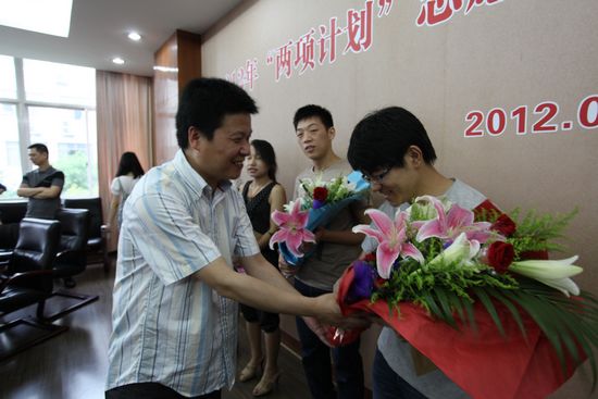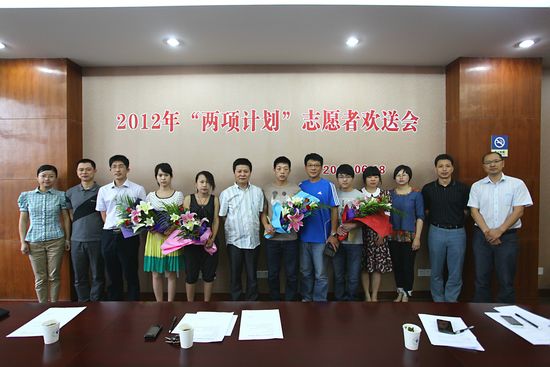 6月18日上午,火博(中国)举行2012年“两项计划”志愿者欢送会。校党委副书记周家健出席,各相关职能部门负责人以及志愿者所在学院党委副书记、班主任代表、辅导员等参加了欢送会。