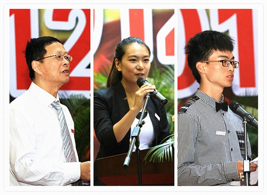 开学典礼上,政治学院沈晓阳教授、文学院郑晓婕同学分别代表教师和老生,欢迎新同学的到来,并对同学们今后的大学生活提出了良好建议和美好祝愿。理学院赵毅同学代表全体新生发言,他表示一定会继承“明体达用”校训,努力学习、踏实生活、务实创新、奋发图强,真正学会认知,学会做人、做事、做学问。