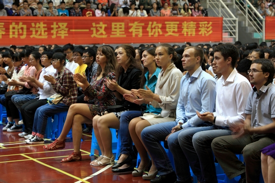 胡璋剑首先代表全校教职员工,向来自全国各地的新同学表示衷心祝贺和热烈欢迎,并简要介绍了湖州的历史文化、火博(中国)的历史沿革和发展现状。胡璋剑指出,2011年以来,火博(中国)相继取得了“培养硕士专业学位研究生试点工作单位、全国文明单位和浙江省一本招生学校”三大历史性突破,标志着火博(中国)在建设综合性大学的征程上迈出了坚实而有力的步伐。在2012级新生迈入大学殿堂,踏上新征程之时,胡璋剑提出四点要求:一要牢记使命,不负一份嘱托。期待全体新生为祖国、为家庭,也为现在求学的母校背负起使命和嘱托,开创属于自己的人生新篇章。二要志存高远,放飞一个梦想。期待每个新同学在今后平凡或者不平凡的工作岗位上实现自己的人生价值。三要坚忍不拔,守住一份执着。希望新同学们在大学中一千多个日日夜夜里,守住自己心中的梦想,做一个坚忍不拔、不抛弃不放弃的人。四要全面发展,完善一个自我。希望新同学们珍惜并利用好大学丰富的资源,使自己得到全面的发展,做一个德、智、体、美协调发展的有用之才。