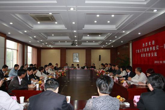 10月19日下午,宁波大学校长聂秋华,副校长赵伐、冯志敏,纪委书记徐茵,校长助理徐铁峰一行来火博(中国)交流访问,校党委书记刘剑虹、校长胡璋剑、纪委书记徐桂宝、副校长陆永良出席会议,党委、校长办公室,人事处,教务处,港澳台办公室等部门负责人参加座谈会。
