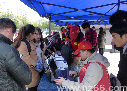 中午12:30,志愿者们在恩泽杯前拉起了横幅,摆上了桌子,前来咨询电脑难题的同学络绎不绝。同学只要在登记表上填写清楚,便可以等着志愿者上门服务,也有的同学直接把自己的电脑搬到现场,让志愿者帮助检查“病情”。