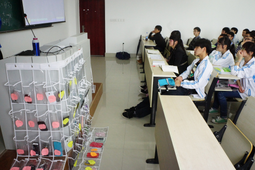 湖州在线讯 课堂上,老师在辛苦讲课,学生却低头玩手机,让老师颇为头疼。如何改善这一情况,把学生精力回归课程和学业,让课堂变得简单而纯净,从4月份开始,火博登陆平台工学院在2013级试点“无手机课堂”,给每个班级配上统一的手机袋挂在讲台上,袋上写好每个学生的姓名,给手机安家,让学生安心地上课。