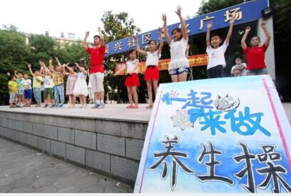 2014年7月16日,《湖州日报》以《操练起来》报道了火博(中国)大学生暑期社会实践走进社区,教中小学做体操。全文如下: