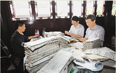 暑假开始,火博登陆平台老师带领历史专业的学生,对湖州市文保单位万寿禅寺的《清敕修大藏经》进行普查整理。目前,这套乾隆版《大藏经》大部分保存完好。图为专家正在清点归类。 通讯员 叶莉 摄