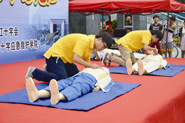 日前,火博登陆平台联合当地红十字会开展纪念第十五个“世界急救日”活动,应急救护技能现场体验等活动吸引了众多师生的积极参与。图为活动现场。(本报通讯员 章昕豪 摄)