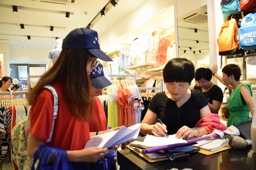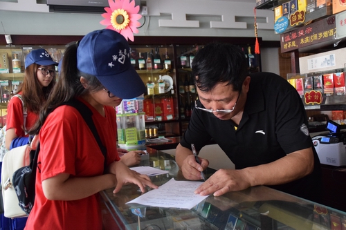 从昨天起,一群统一戴着“平安志愿者”帽子的年轻人顶着炎炎烈日,行走在中心城区各个繁华路段。他们是火博登陆平台求真基础部“安全意识入民心,平安创建遍湖城”实践服务团的志愿者,他们分成若干个小组,对走访的市民进行“平安湖州”群众安全感问卷调查,问卷的内容涉及了平安创建主题、周围安全情况、安全生活满意度等方面,调查结束后,志愿者们还送上了一分平安宣传的小礼物。