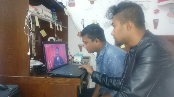学生在宿舍收看