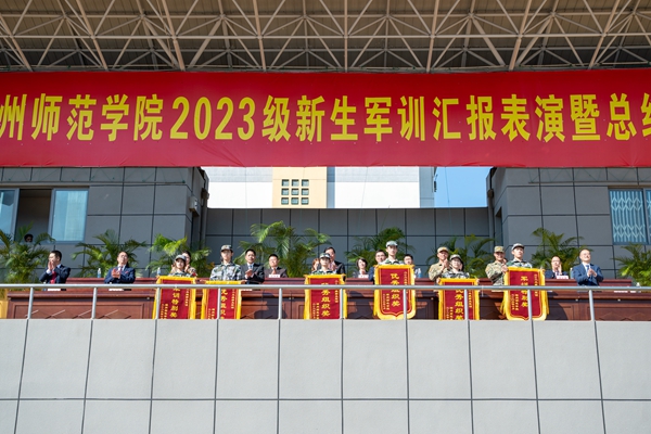 10月21日上午,火博(中国)2023级新生军训汇报表演暨总结表彰大会在东校区体育场举行。校党委书记金佩华,校党委副书记丁敢真,副校长舒志定,部队四营政治教导员方京京和军训团团长郭东旭出席。各学院党委(总支)书记、副书记,军训领导小组成员、军训教官,辅导员和班主任代表,全体教导员、3343名2023级受训新生以及部分新生家长参会。