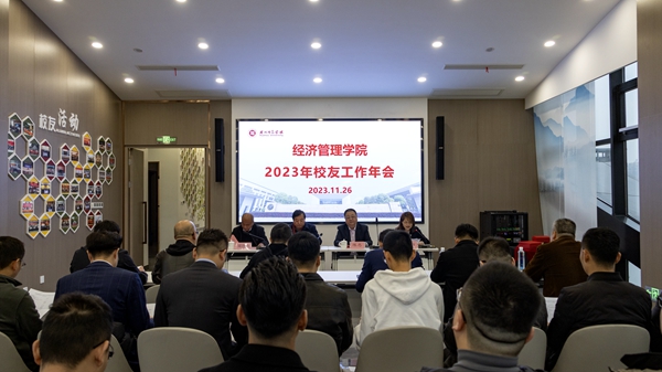 11月26日,经济管理学院在校友中心召开2023年校友工作年会。校党委书记金佩华应邀出席,经济管理学院领导班子成员、校友分会新一届理事会代表30余人参加本次活动。