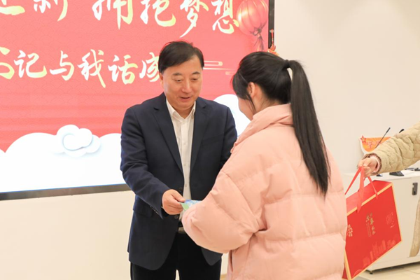现场,金佩华用温暖真诚的话语、丰富翔实的案例与同学们交心互动,还为每位同学送上了寄语贺卡和慰问品。一个多小时的交流,既是问题答疑也是成长解惑,既是成长分享也是心灵沟通。学生代表对学校给予的鼓励和关怀表达了衷心感谢,并纷纷表示会谨记书记嘱托,努力学习、创新实践,以实际行动当好青春追梦人。